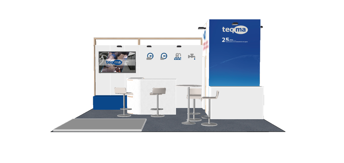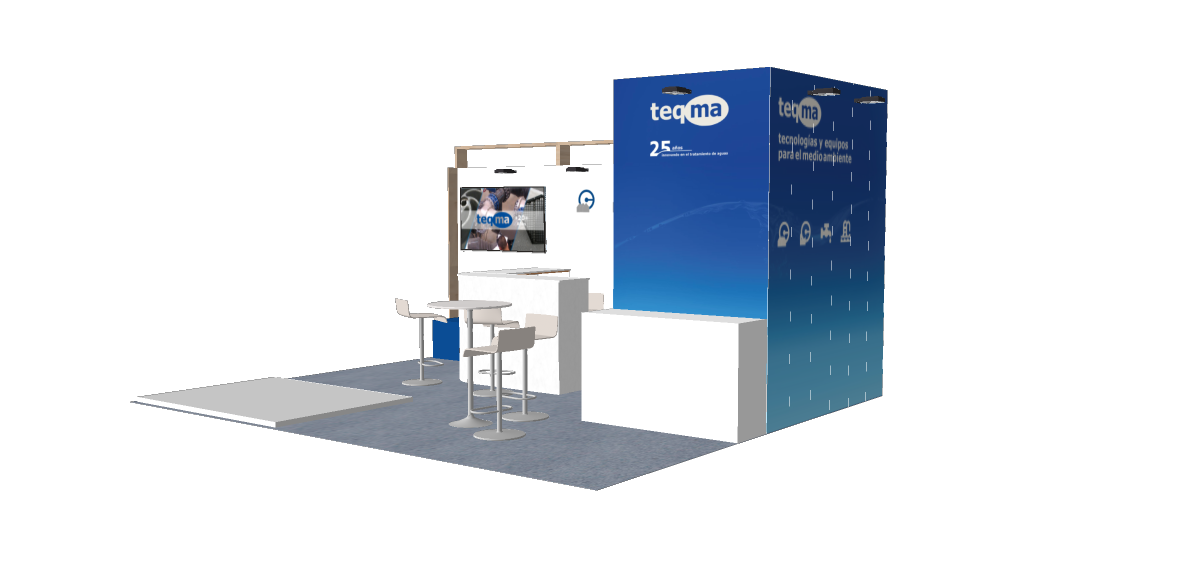 Teqma, líder en soluciones tecnológicas para el tratamiento y reutilización del agua, necesitaba un espacio que reflejara su compromiso con la sostenibilidad y la innovación. Nuestro equipo diseñó un stand que no solo destacara visualmente en la feria, sino que también transmitiera la esencia de la marca con: