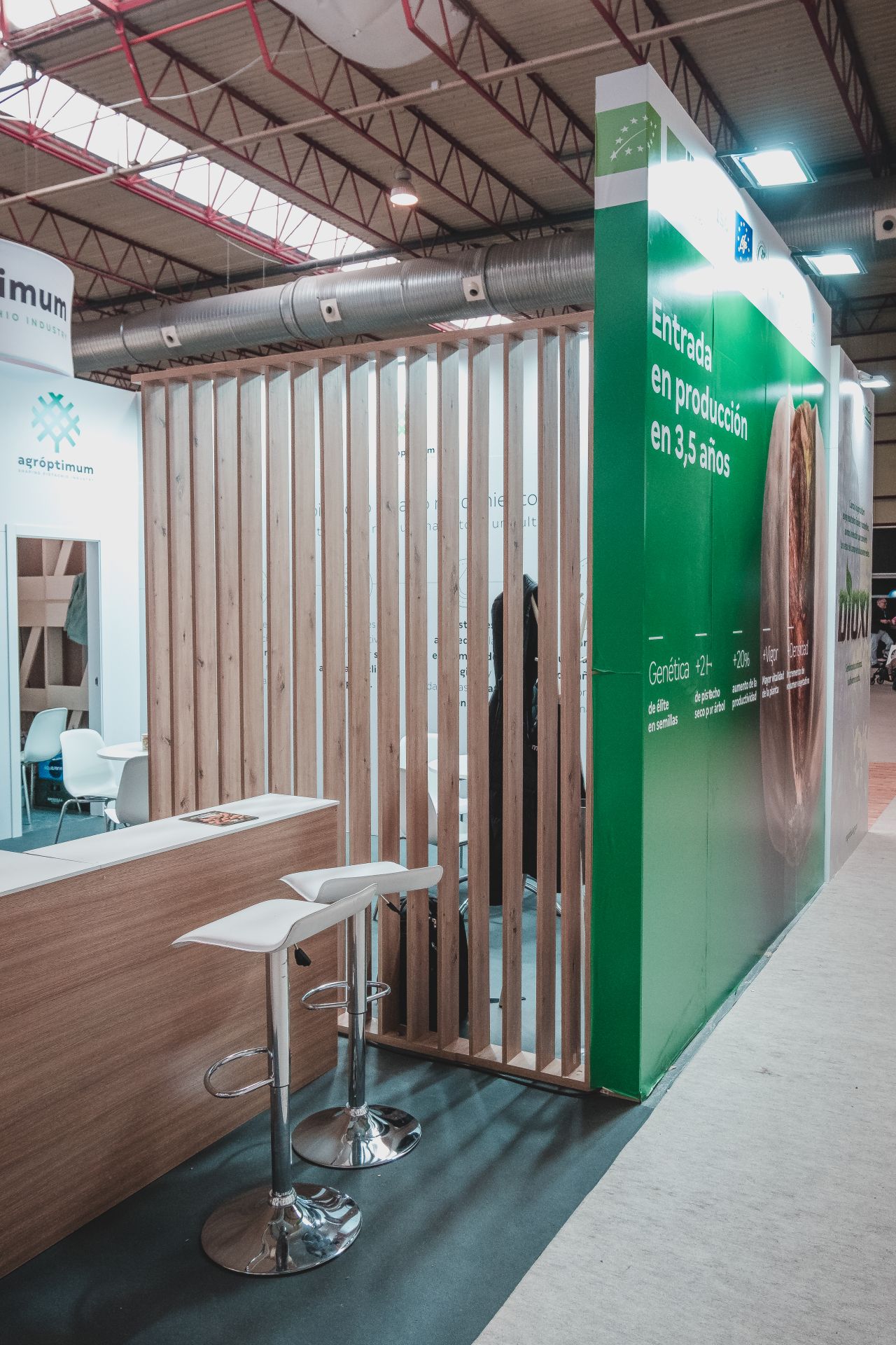 Agróptimum’s visual identity, built around green and white tones, was integrated throughout the architecture of the stand to reinforce its positioning as an innovative company within the agricultural sector.