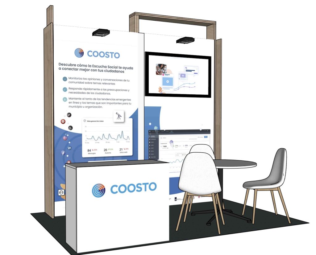 Welcome to the 2024 National Congress on Public Innovation in Valencia! This time, we’re in charge of the booth for Coosto, a digital marketing tool.